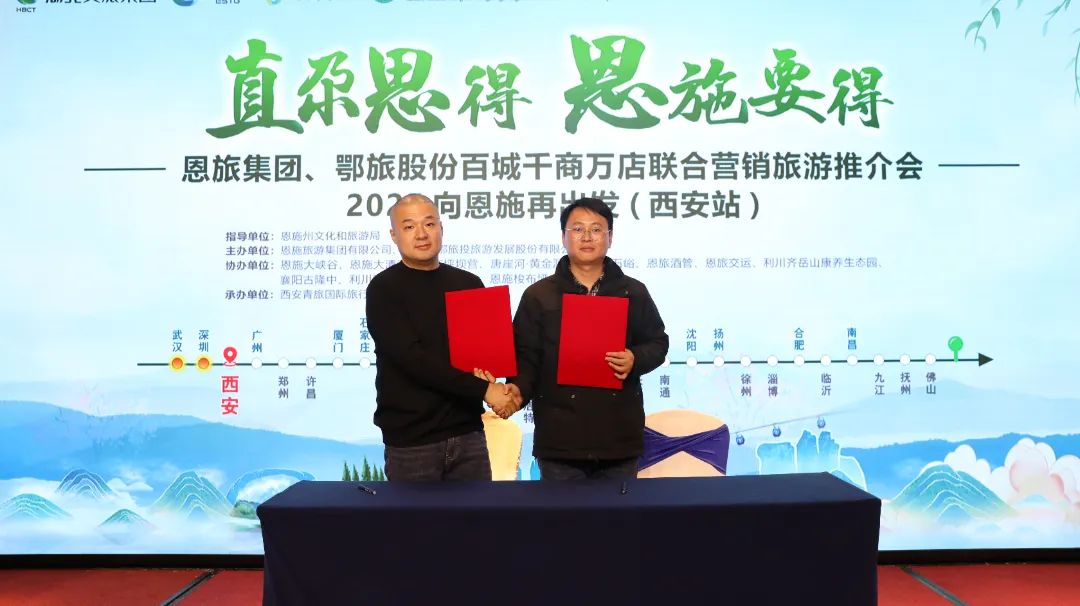恩旅集团旗下景区、襄阳古隆中、恩施腾龙洞、地心谷、梭布垭、鹿院坪景区面向陕西的旅游企业及媒体进行生动推介,同时,恩旅集团还与陕西旅行商企业代表签署了战略合作协议,共同推动彩票平台产业的高质量发展。