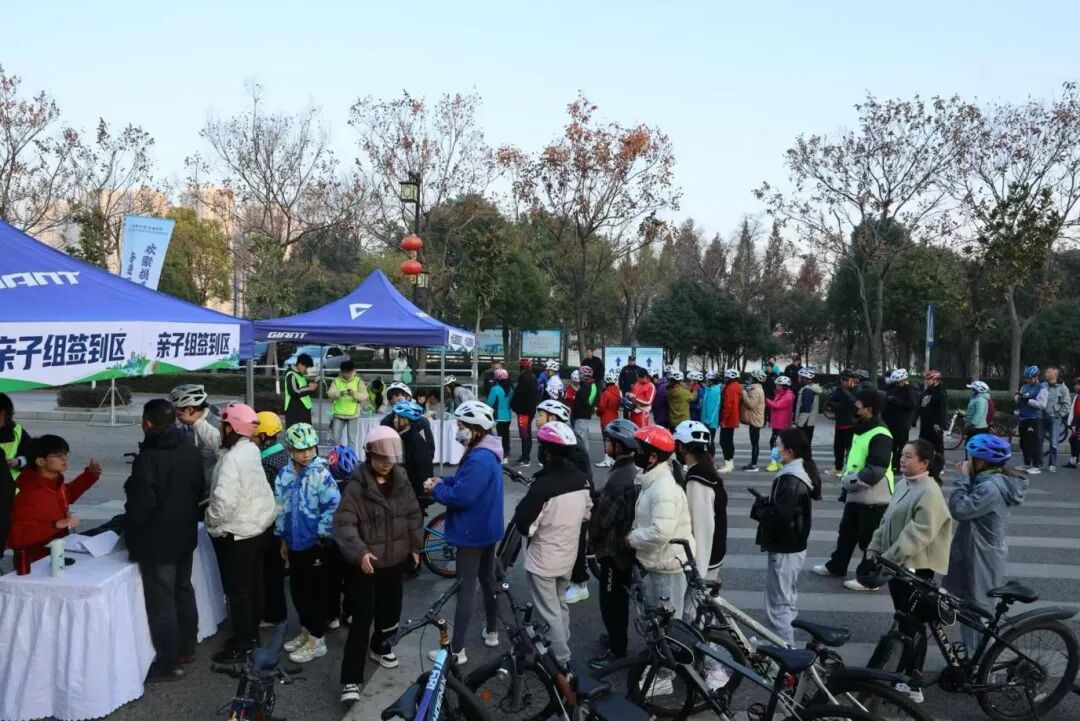 清晨的陈家湖公园内,五颜六色的骑行装备与沿线的湖光山色相映成趣,成人骑手们整装待发,亲子家庭欢声笑语。随着发令枪响,骑行队伍如长龙般缓缓前行,串联起陈家湖、山底湖、官田湖三大生态湖区与南岳山景区,形成一道“人在画中骑,景随轮流转”的流动风景线。