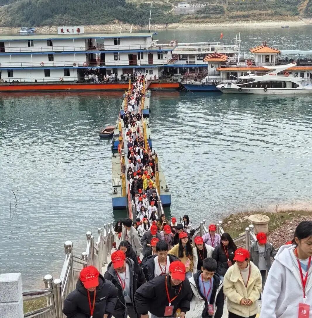 景区为师生们安排了土家文化专职讲解员,在游船上讲述神农溪的地质成因与人文变迁,并现场唱起原生态的土家山歌,邀请同学们一起体验纤夫号子的节奏。“嘿佐、嘿佐……”千名师生齐声应和,欢笑声与号子声在峡谷间久久回荡。