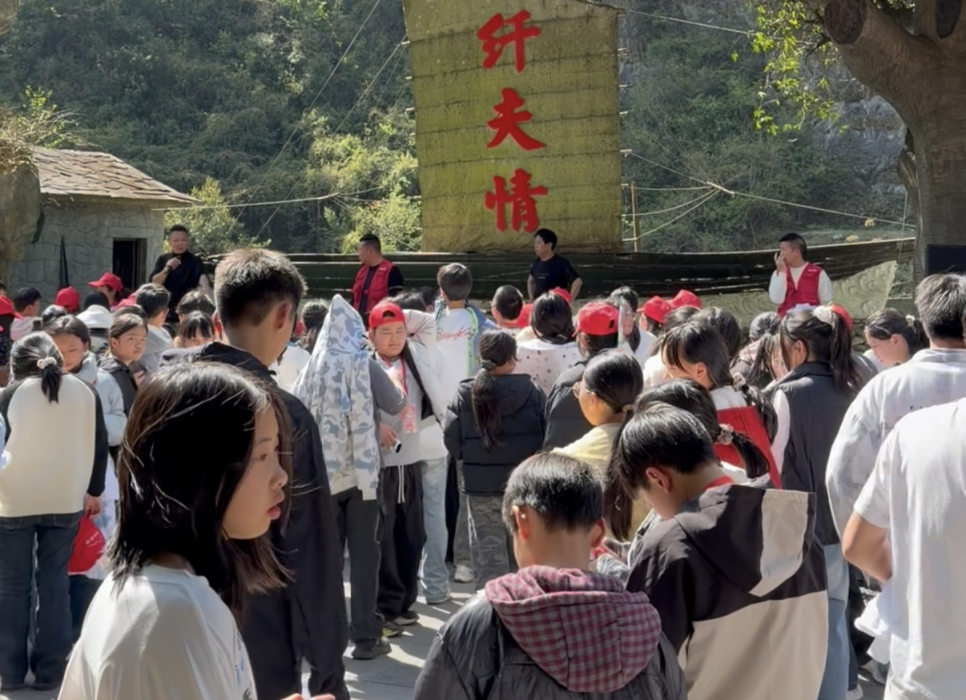 神农溪是纤夫文化的活态传承地。研学活动中,同学们不仅乘船观赏了“豌豆角”扁舟的实景展示,还在景区的纤夫文化广场近距离触摸纤绳、体验旱地拉纤,聆听老纤夫讲述祖辈“脚蹬石头手扒沙”的艰辛岁月。一位学生感慨:“以前只在电视里看过纤夫,今天站在神农溪边,听着号子、看着湍急的溪水,才真正理解了什么叫团结一心、逆流而上。”