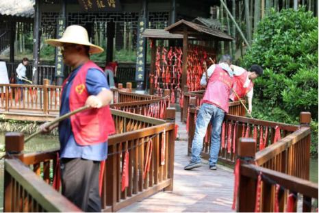 图为隆中三支党员队伍开展景区杂草清理志愿活动