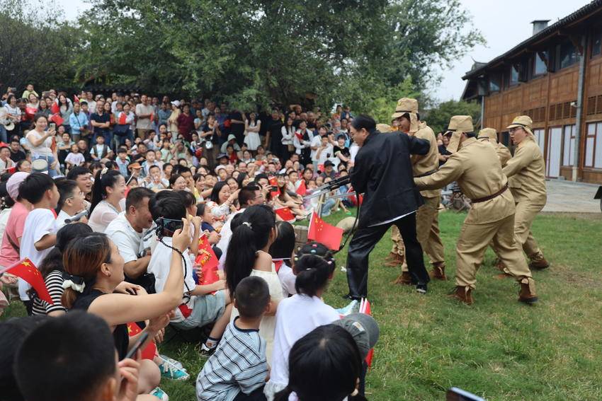 文旅融合创新,沉浸式体验受热捧。景区推出的《烽火沔阳》《沔阳保卫战》等实景演艺,通过互动式剧情设计让游客化身剧中角色,在沉浸体验中感受家国情怀。活动现场,游客们齐声高唱爱国歌曲,现场氛围热烈。而由专业团队打造的飞车特技表演,则以其惊险刺激的漂移、飞跃等高难度动作,引得观众惊呼连连。