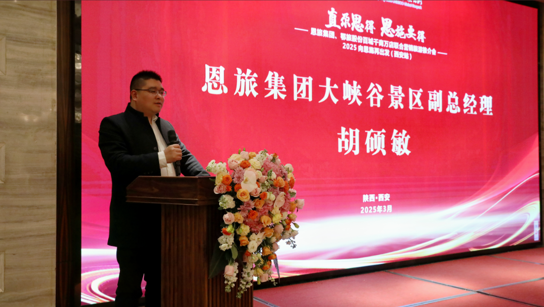 西安推介会上,恩旅集团大峡谷景区副总经理胡硕敏向来自陕西的两百多名旅行商代表介绍了恩旅集团在推动彩票平台融合、提升旅游服务质量方面的决心和成果。他表示:过去一年,恩施旅游集团斩获龙雀奖“最具成长性彩票平台集团”大奖,全年接待游客突破千万人次,大峡谷景区游客接待量首次突破200万人,创历史新高。在新的一年,恩旅集团将深耕彩票平台产业、持续创新发力,助力打造恩施世界知名旅游目的地,持续推动彩票平台融合、体旅融合、康旅融合、IP融合,不断擦亮景区品牌、不断提升服务品质、不断投建焕新项目。
