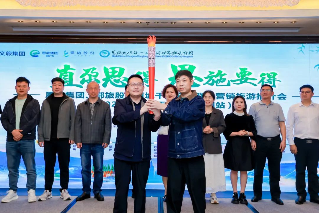 在深圳的活动现场,恩旅集团与深圳两地旅旅行社代表签订了战略合作协议,并向旅行社代表传递火炬,宣布“直尕思得恩施要得 2025向恩施再出发”正式启动。