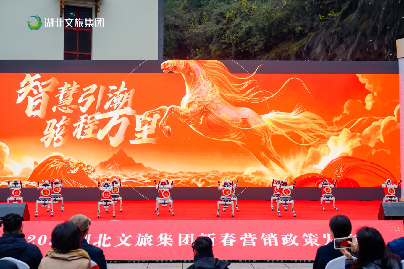 12月24日,“荆楚策马迎新春 文旅乘风启鸿程”2026彩票平台 新春营销政策发布会在宜昌隆重举行。鄂旅股份酷驰科技的机器狗天团惊艳亮相,以灵动创意点亮现场氛围。