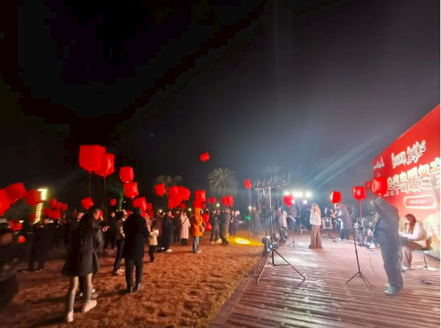 元旦期间,悦兮半岛持续火爆,连续实现满房,景区内灯火璀璨、笑语盈园。围绕“温泉+狂欢”主题,一系列精心策划的活动贯穿昼夜,白天,温泉区“藕汤暖胃,氟泉暖心”活动备受青睐;夜晚,千灯祈福仪式光影绚烂,篝火晚会、乐队演出、创意集市等活动将节日氛围推向高潮。