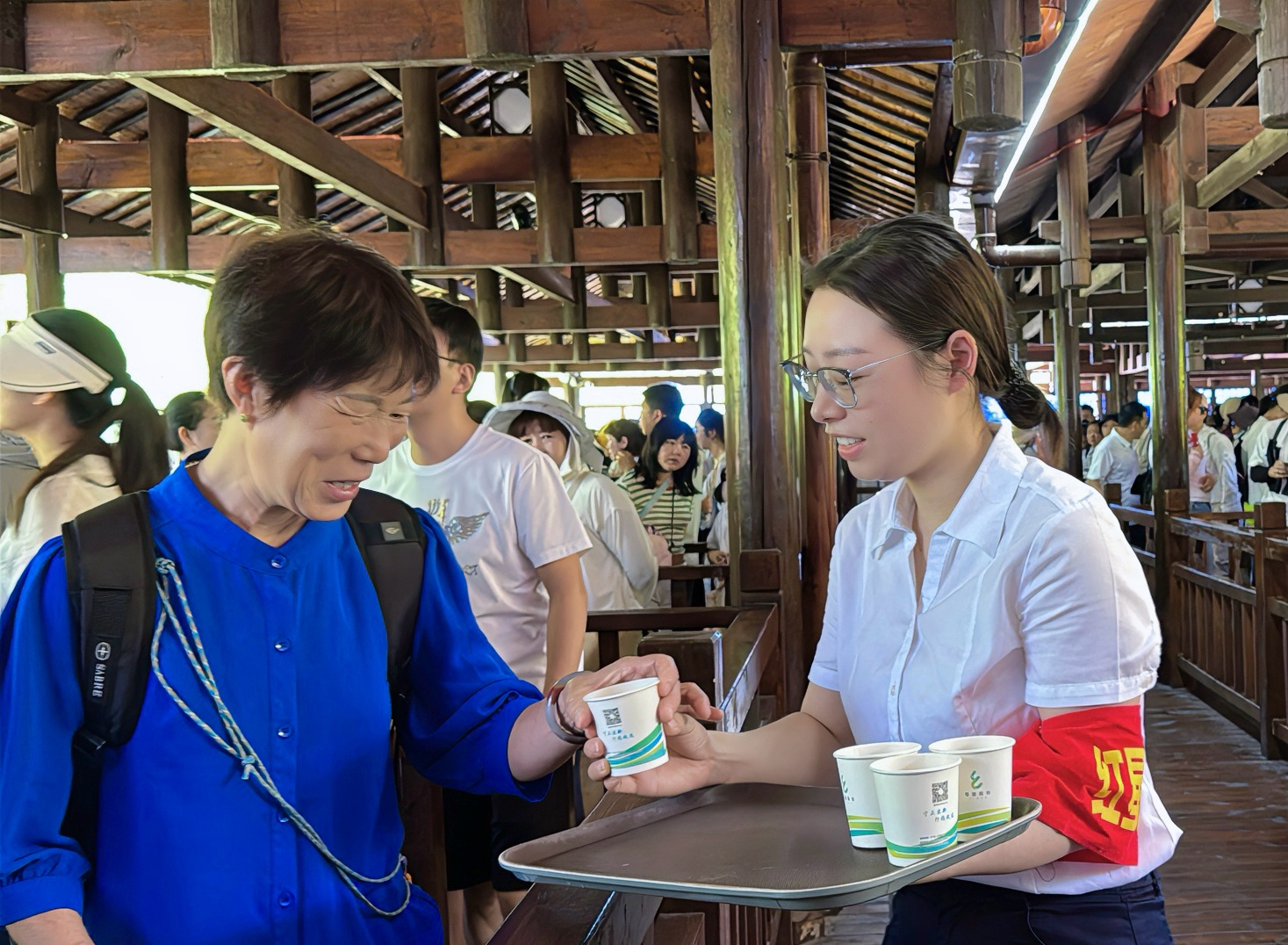 7月中旬以来,鄂旅股份在为游客送清凉、保安全等方面下足了功夫,公司领导班子每周轮流带班,本部每天抽调5-6名员工,由党员干部带头组成先锋队、服务队、突击队,发动“红色引擎”261人次,与景区员工齐心协力,集中精力为游客送清凉,提供优质服务和安全保障,深入践行“三大精神”,将用50天的一线坚守,助力为游客带来夏季美好游览体验。
