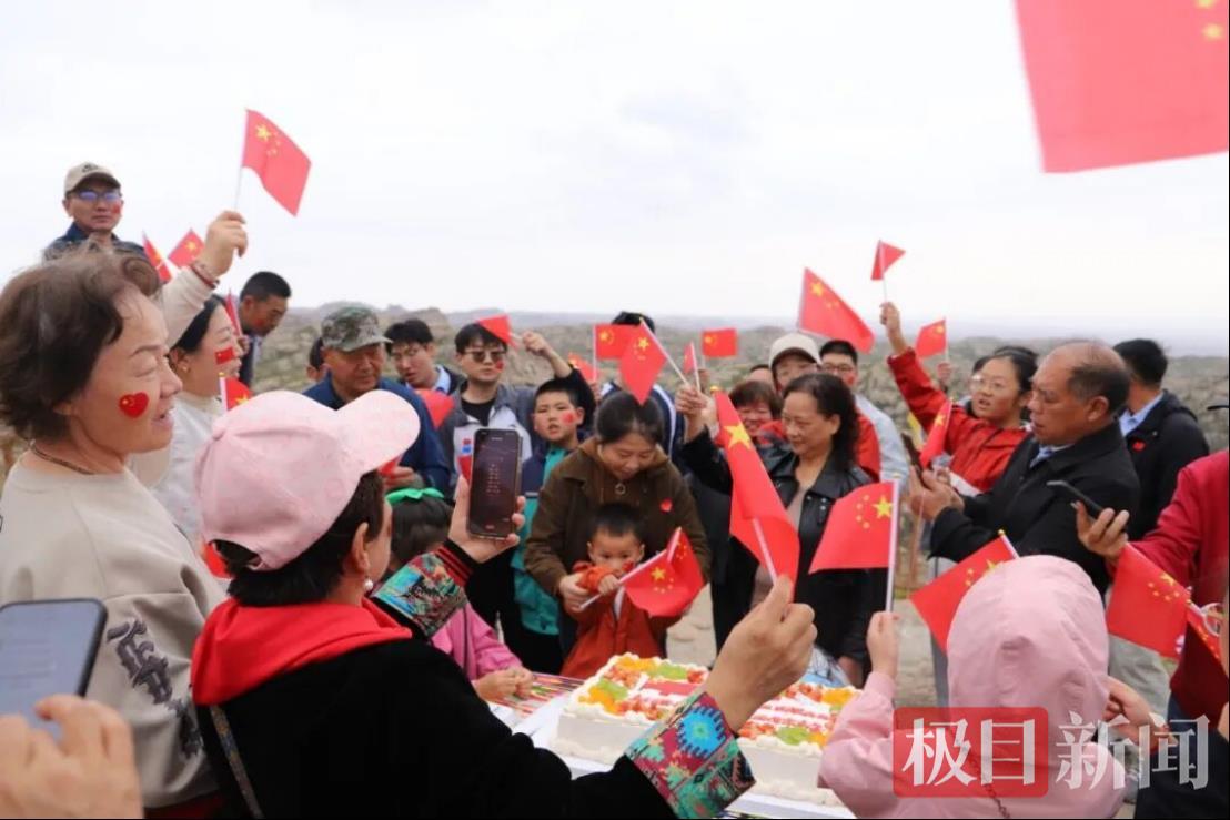 位于祖国西北边陲的新疆怪石峪景区,则以一场富有意义的登山活动为祖国庆生。“我在祖国最西北为祖国庆生”登山活动吸引了众多游客参与。队伍从塔斯广场出发,沿着景观步道向山顶进发。成功抵达北苑观景台后,游客们面对壮丽山川,齐声高唱《歌唱祖国》,并分享了特制的节日蛋糕,“祖国万岁”的真诚呐喊在山谷间激荡回响。登山途中,景区精心设置的多个“与国旗同框”打卡点也深受游客喜爱,人们纷纷在此驻足,留下与国旗同框的珍贵合影。