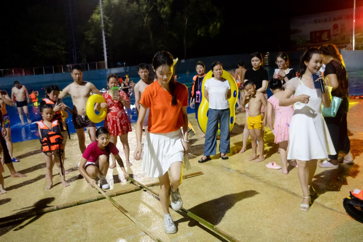 此外,水上乐园还为游客们准备了丰富多样的互动活动。特色傣族歌舞表演、有奖互动、竹竿舞、篝火晚会等,引来游客好评连连,欢声不断。