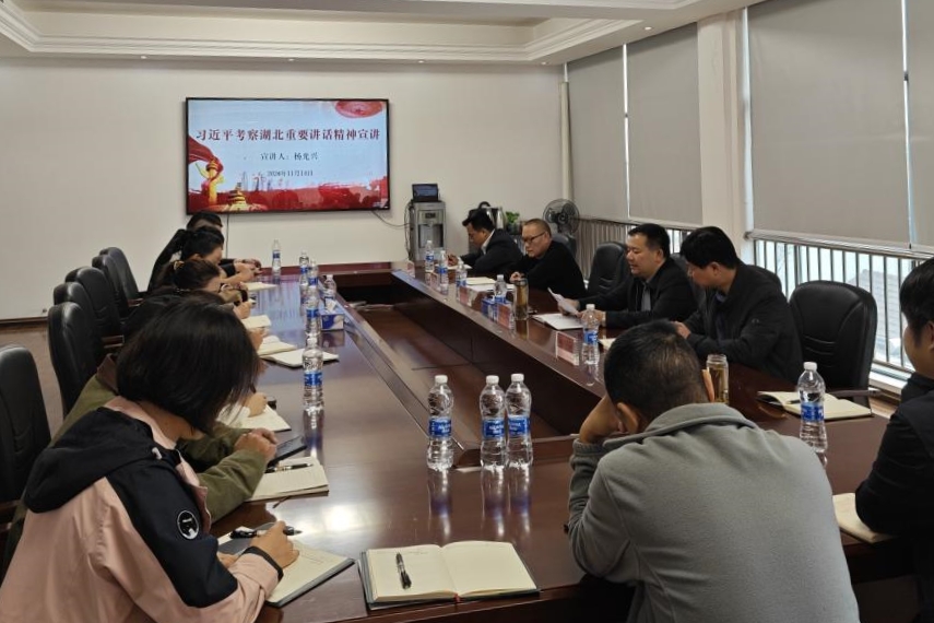 11月14日,洈水集团党委委员、常务副总经理杨光兴在旅游公司开展习近平总书记考察湖北重要讲话精神和党的二十届三中全会精神宣讲。洈水集团党建工作部主要负责人,旅游公司班子成员、中层管理人员、全体党员参加。